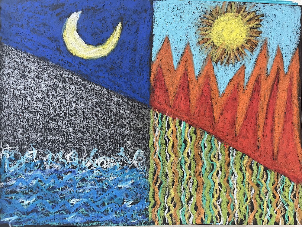 So entstanden meine gemalten „Tagebücher. Oft erlebte ich, daß 2 oder auch 3 Mittel kombiniert, sich einander beflügelten und diesen in den Bildern abgebildeten Erkenntnisprozeß ins Fließen brachten.